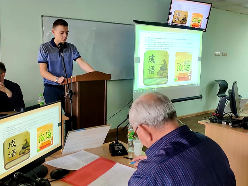 Сто баллов – так жюри секции «Страны АТР в аспекте языка и культуры» единодушно оценило выступление третьекурсника Максима Корниюка (гр. БЛГ-18-КИ) «Особенности перевода китайских реалий в художественных текстах на материале произведений Фэн Цзицай» (научный руководитель – кандидат филологических наук В.И. Молодых, доцент кафедры МКП). Примечательно, что М. Корниюк и в прошлом году был победителем этой секции в рамках традиционной конференции «Интеллектуальный потенциал ВУЗов – на развитие дальневосточного региона России и стран АТР».