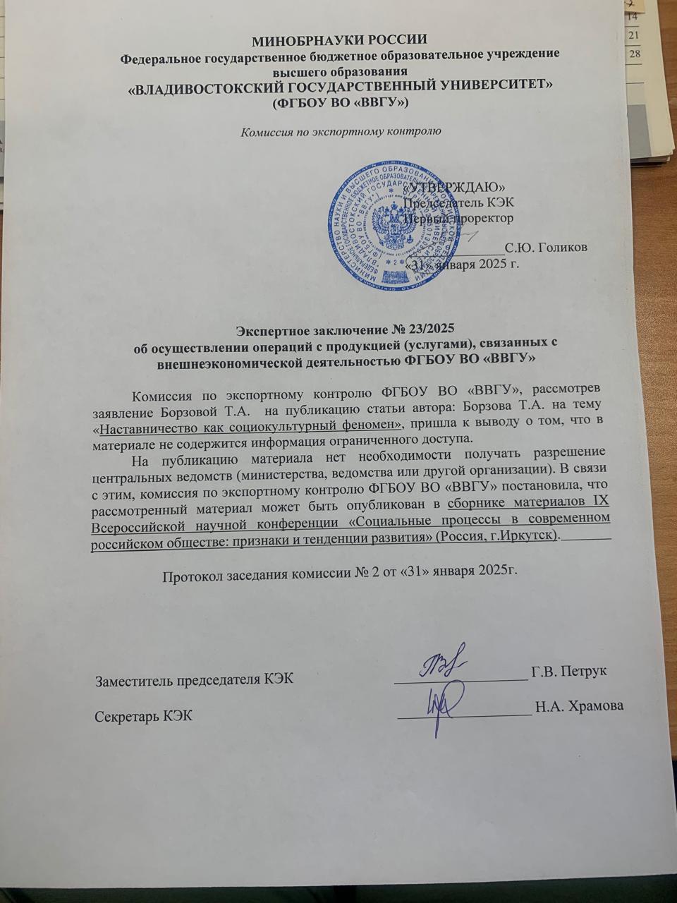НАСТАВНИЧЕСТВО КАК СОЦИОКУЛЬТУРНЫЙ ФЕНОМЕН