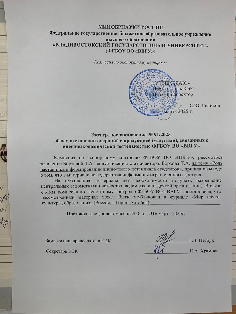 РОЛЬ НАСТАВНИКА В ФОРМИРОВАНИИ ЛИЧНОСТНОГО ПОТЕНЦИАЛА СТУДЕНТОВ