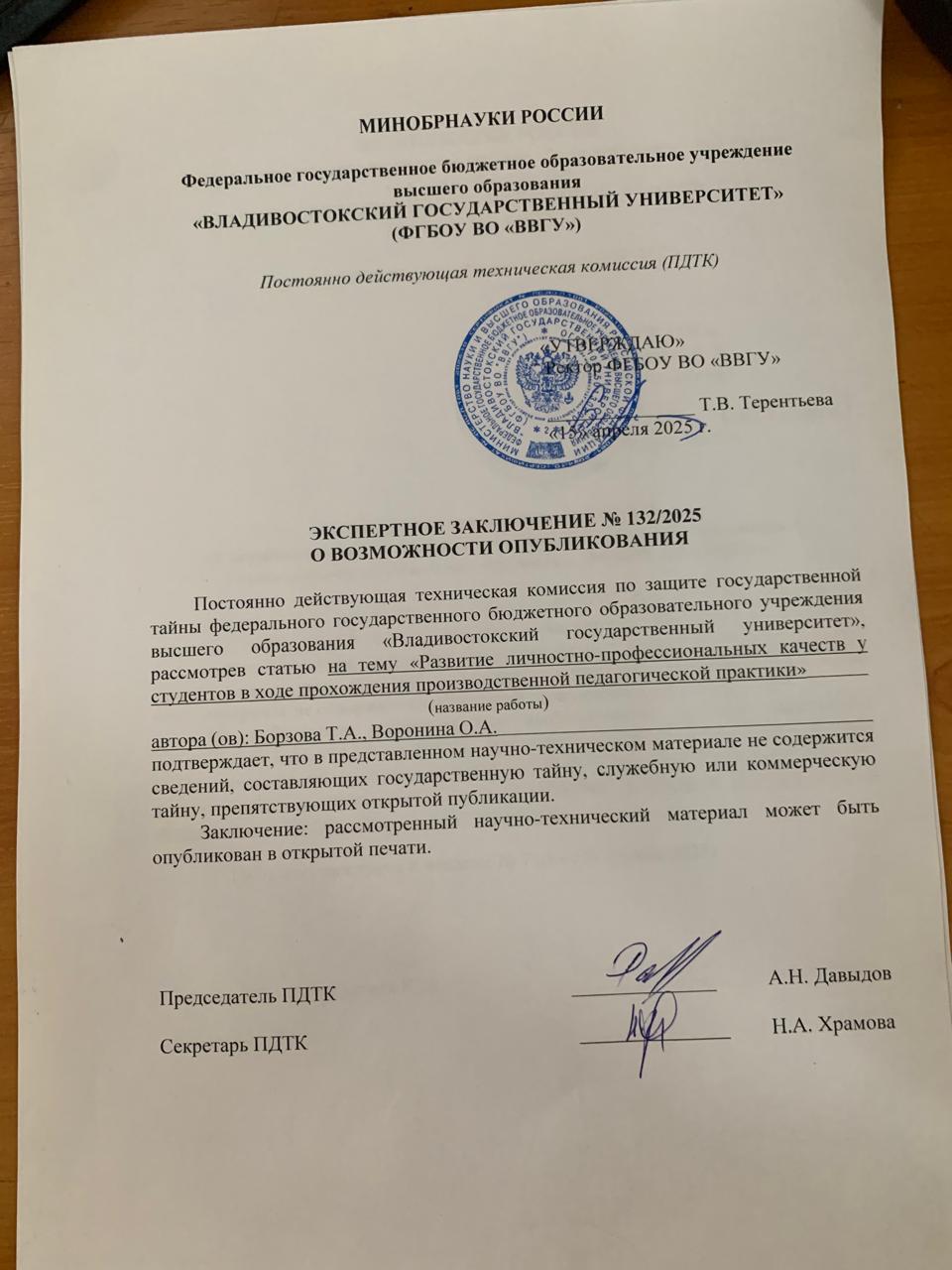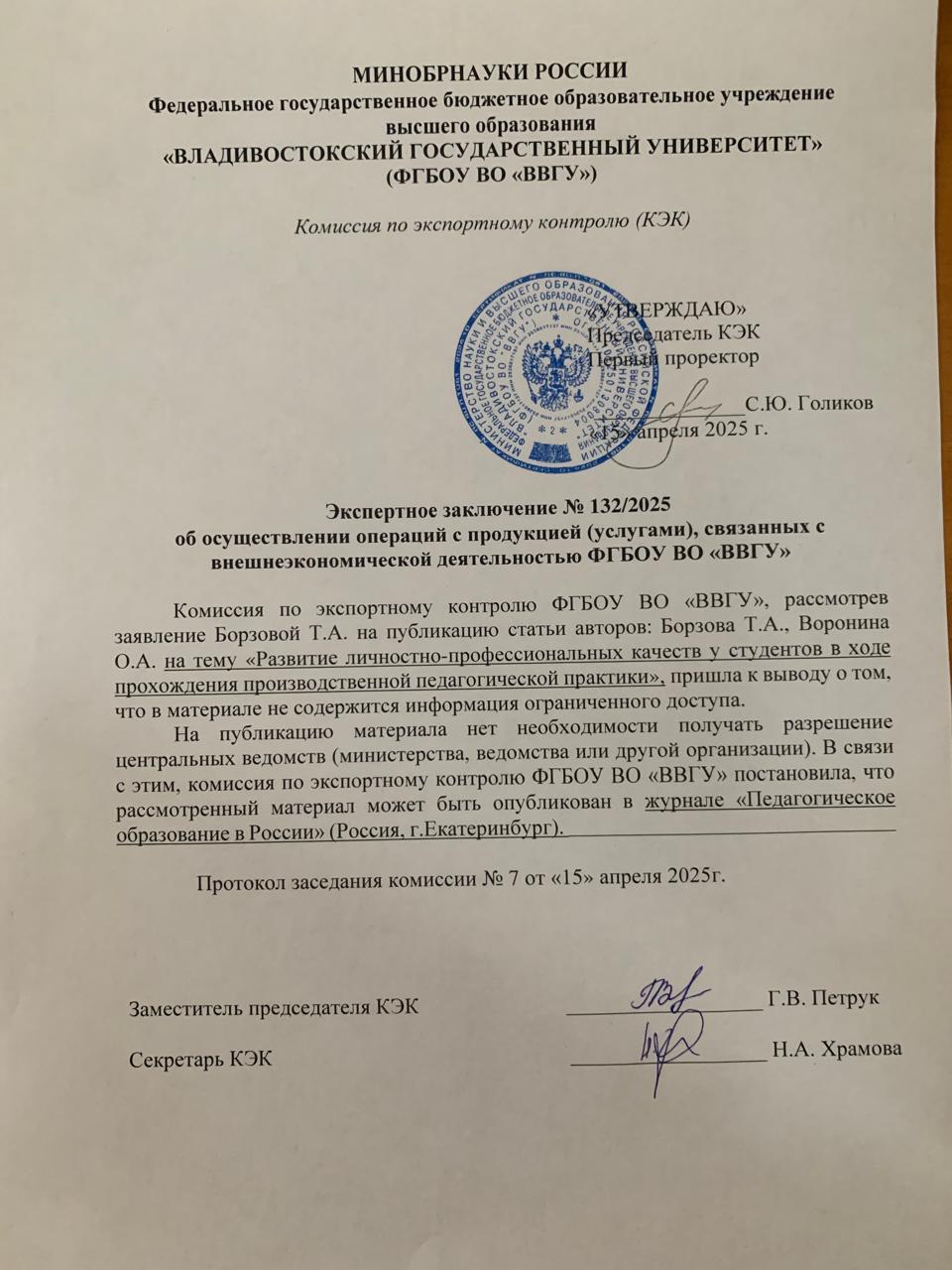 РАЗВИТИЕ ЛИЧНОСТНО-ПРОФЕССИОНАЛЬНЫХ КАЧЕСТВ У СТУДЕНТОВ В ХОДЕ ПРОХОЖДЕНИЯ ПРОИЗВОДСТВЕННОЙ ПЕДАГОГИЧЕСКОЙ ПРАКТИКИ . Институт педагогики и лингвистики